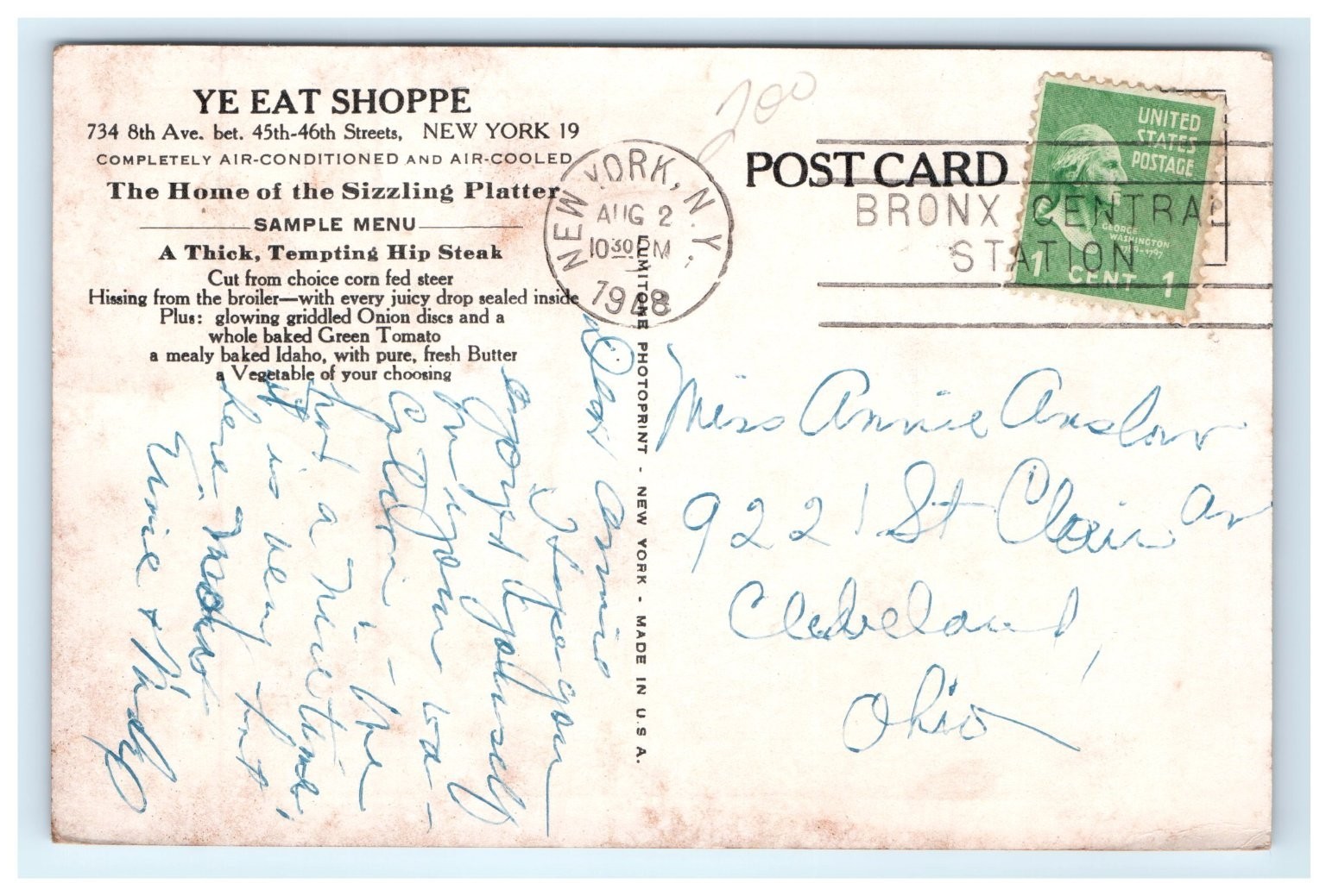Vintage Ye Eat Shoppe New York Art Deco Ad Postcard