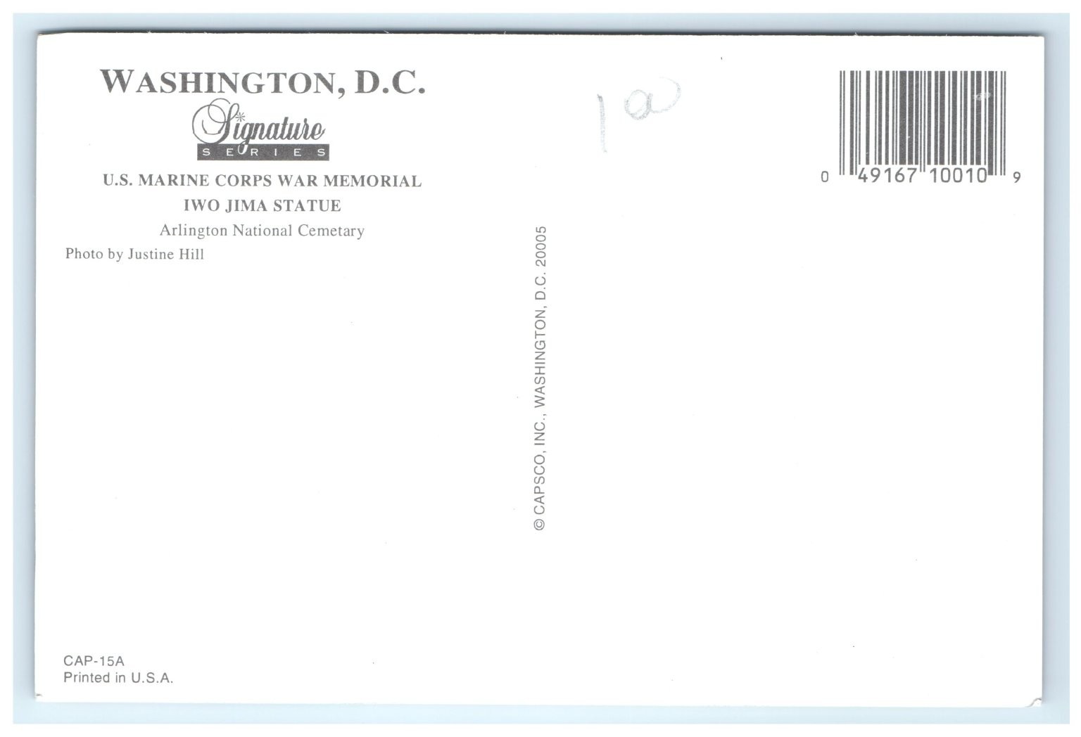 Produced by CAPSCO, Inc., Washington D.C., this postcard is part of the Signature Series and was photographed by Justine Hill. It measures a continental size of 6 x 4 inches, printed on paper with vibrant lithographic printing techniques ensuring sharp and lasting imagery. The card is unposted and original, making it a valuable addition for collectors interested in U.S. military heritage, patriotic themes, or iconic American landmarks. Perfect for framing or adding to a historical postcard collection.