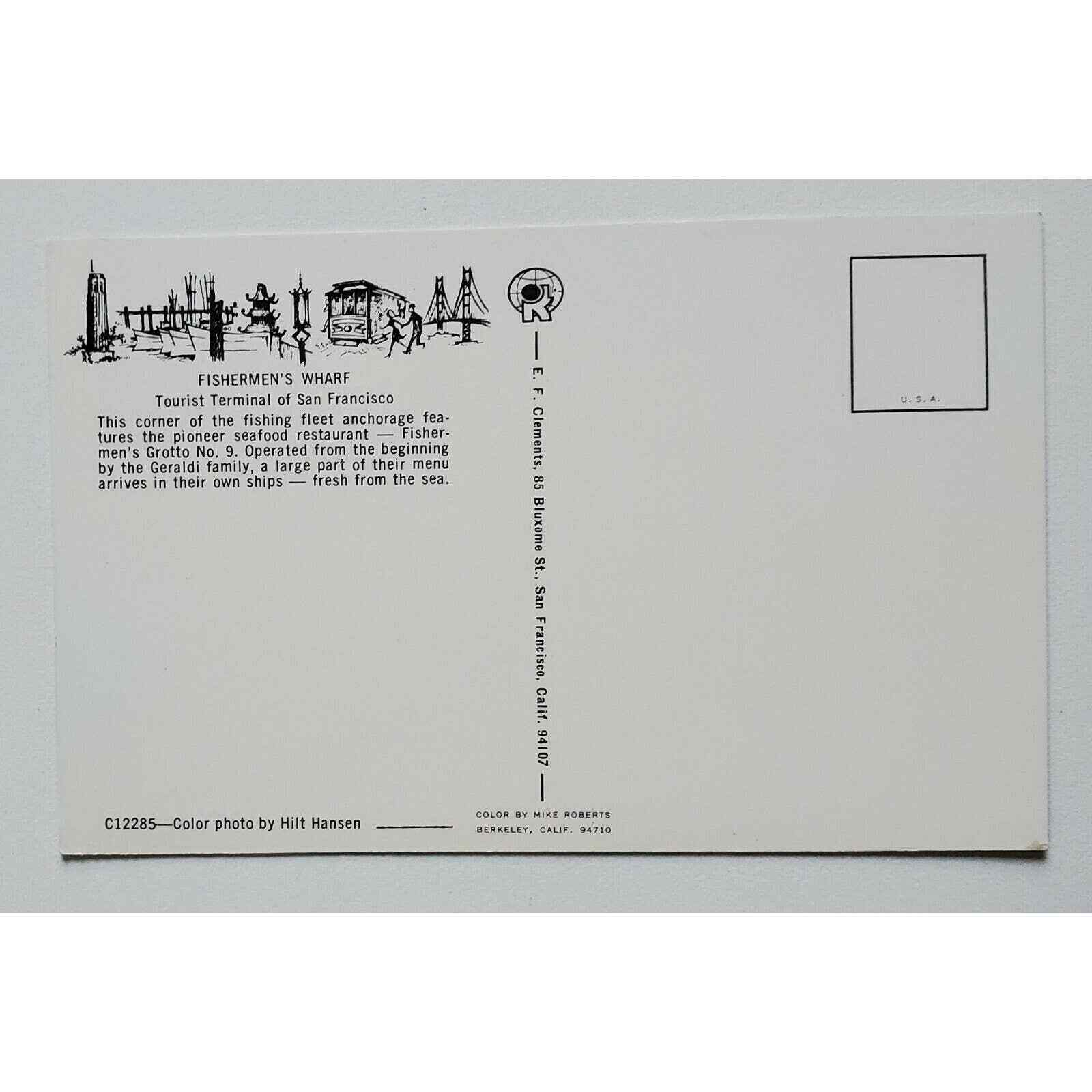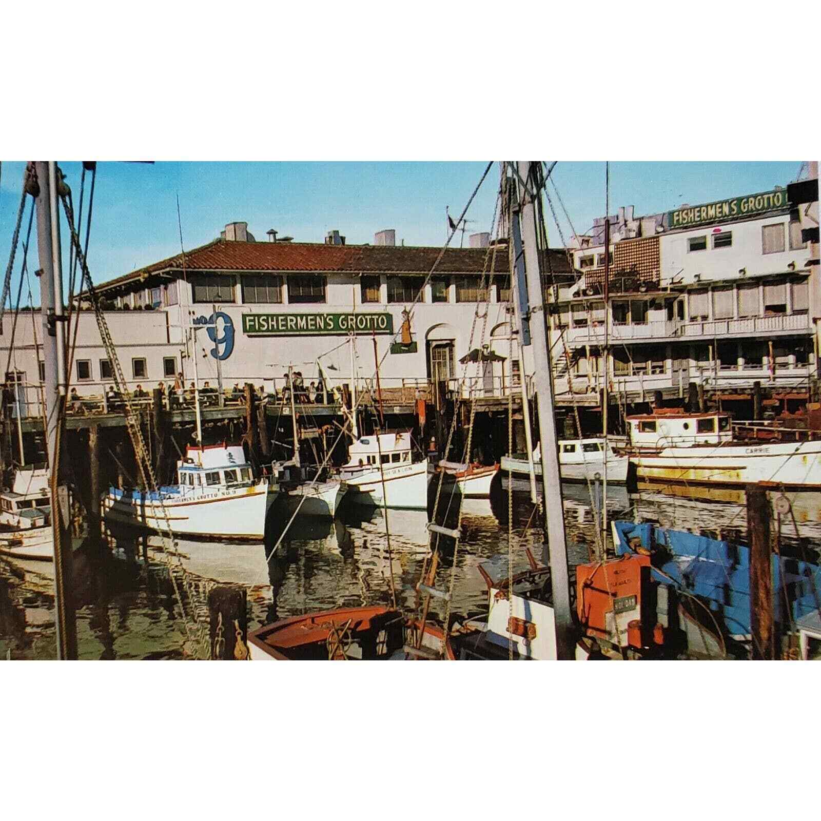 Vintage Divided Back Chrome Postcard Featuring the Fisherman's Wharf Located in San Francisco California Depicting Fishermen's Grotto and Fishing Boats.