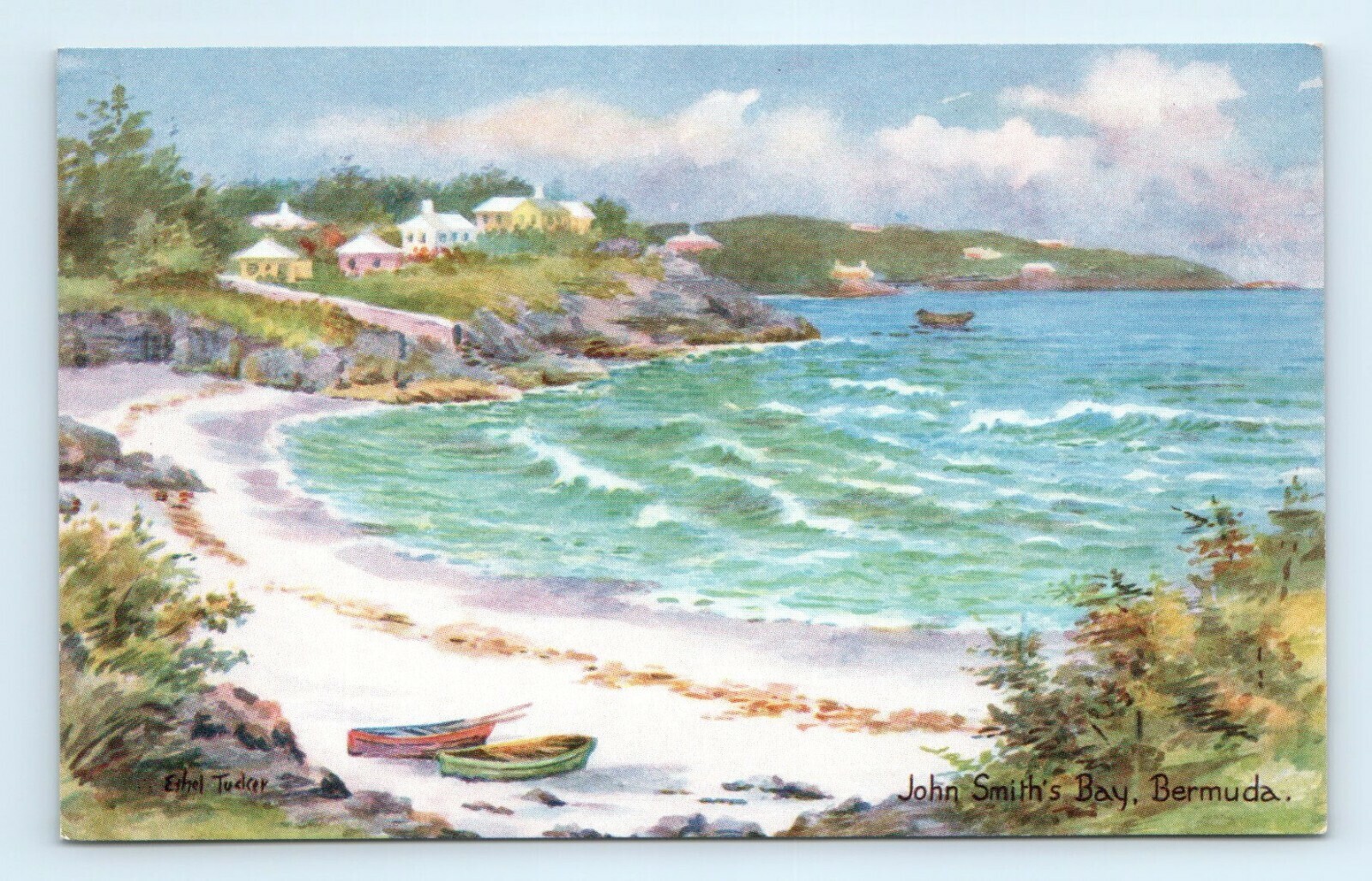 Vintage Divided Back Postcard Depicting a Painting by C. F. Tucker of John Smith's Bay in Bermuda.