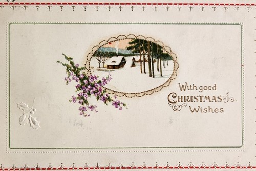 Christmas Wishes Winter Cabin Scene Postcard Posted 1914