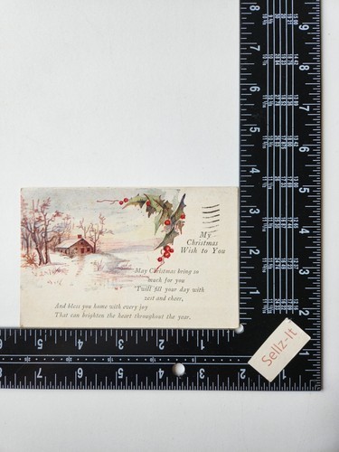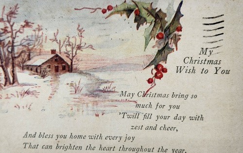 Christmas Wish Poem Cabin Winter Holly Art Christmas Postcard Posted 1920