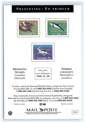 1990 Canada Definitive Stamps Mammals Wolverine Whale Ad Postcard