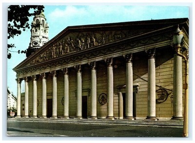 This vintage postcard features a stunning lithograph image of the Cathedral of Buenos Aires, Argentina. The front showcases the impressive neoclassical facade with its tall Corinthian columns and detailed sculptural frieze above the entrance. The distinctive bell tower rises behind the cathedral, adding to the architectural grandeur captured in vibrant colors. This chrome postcard beautifully highlights one of Buenos Aires' most iconic landmarks, blending historical and artistic appeal.