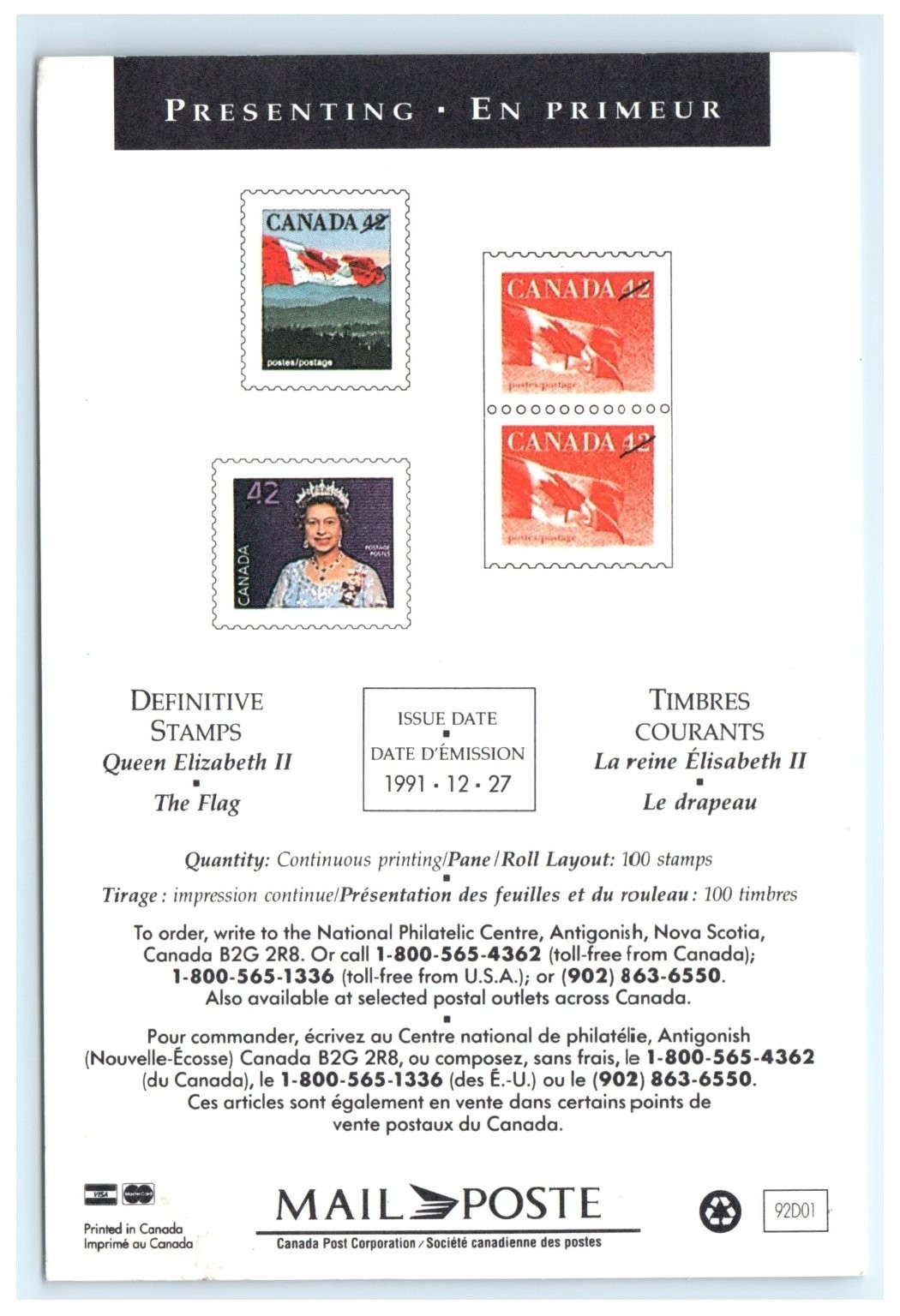 1991 Canada Definitive Stamps Queen Elizabeth II Flag Postcard