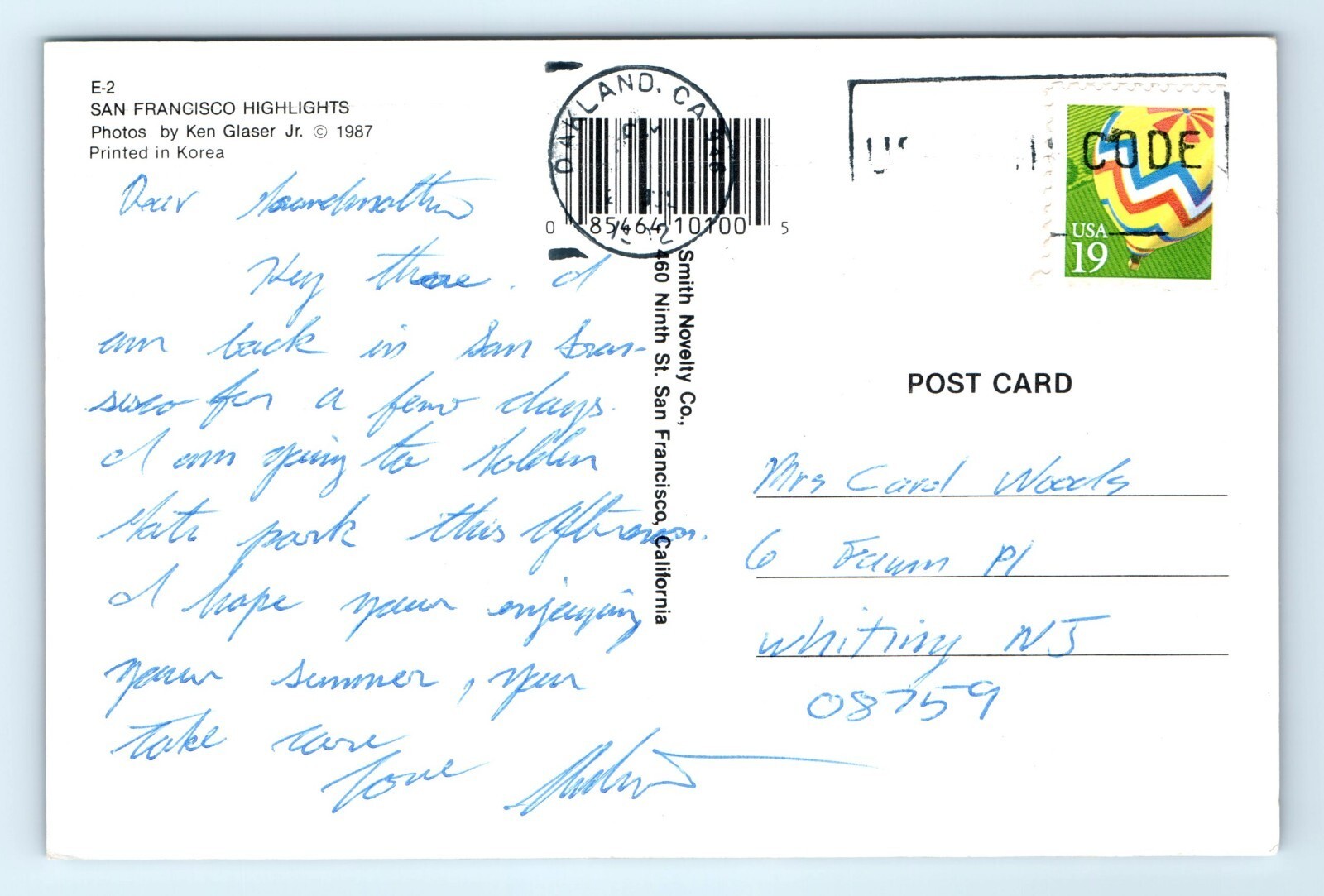 San Francisco Highlights Skyline Row Homes CA Postcard Posted