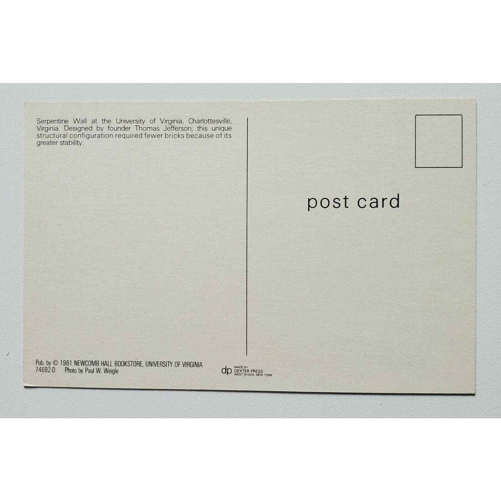 Vintage Divided Back Chrome Postcard Featuring the Serpentine Wall at the University of Virginia Designed by Thomas Jefferson Located in Charlottesville Virginia