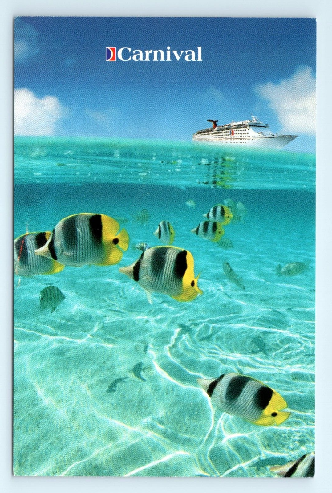 Vintage Divided Back Advertising Postcard for Carinval Cruise Lines Depicting the Blackwedged Butterfly Fish in the Sea.