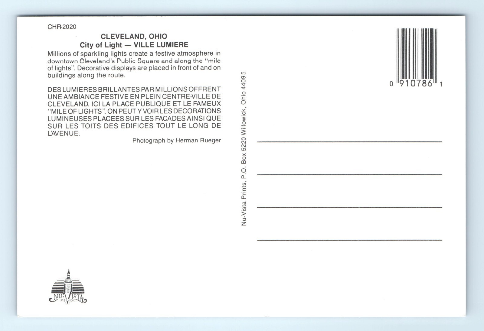City Light Ville Lumiere Public Square Christmas Lights Cleveland OH Postcard