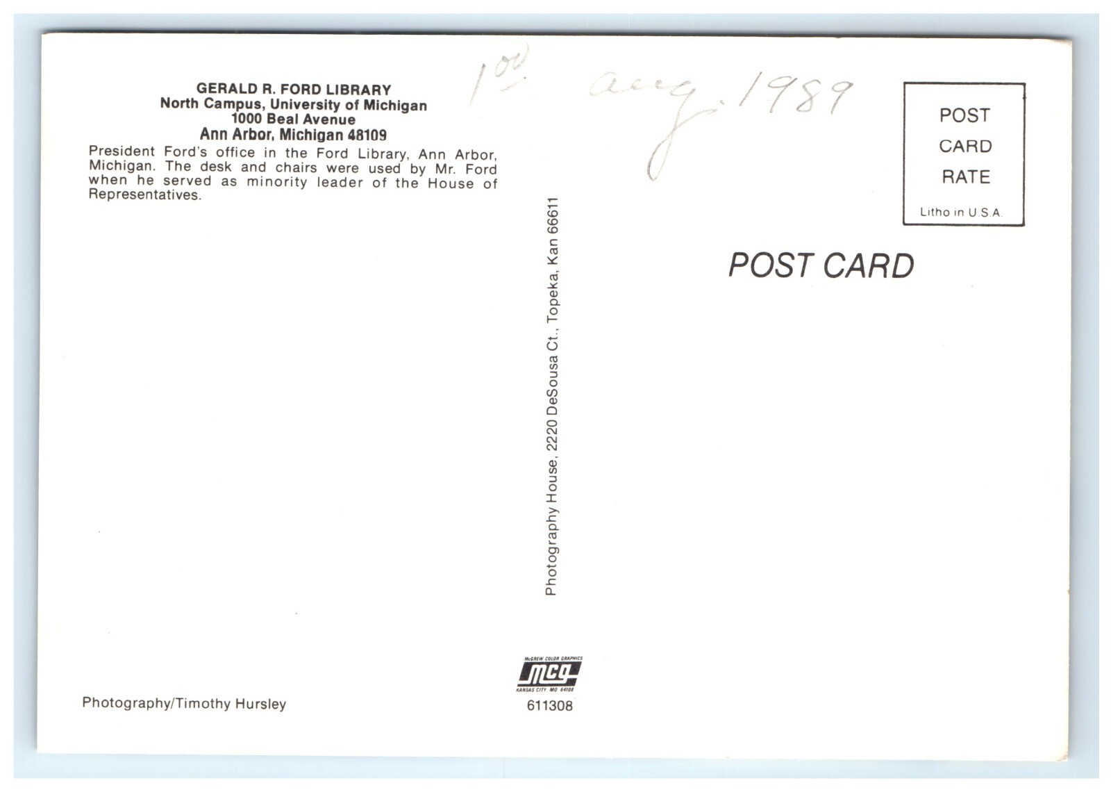 Gerald Ford Library University of Michigan Ann Arbor MI Postcard