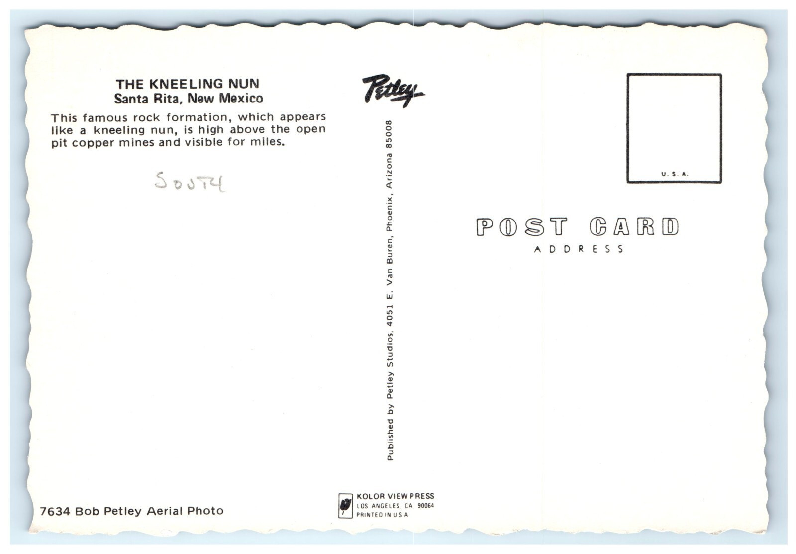 Vintage Divided Back Postcard Depicting the Rock Formation Entitled the Kneeling Nun Located in Santa Rita New Mexico.
