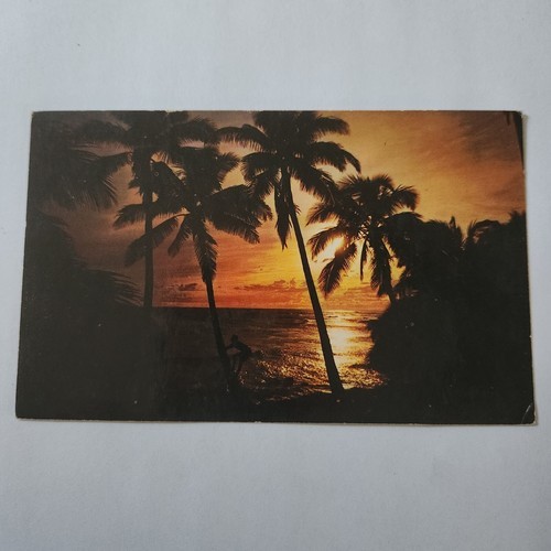 Sunset Palm Trees Ocean Jamaica Postcard Posted
