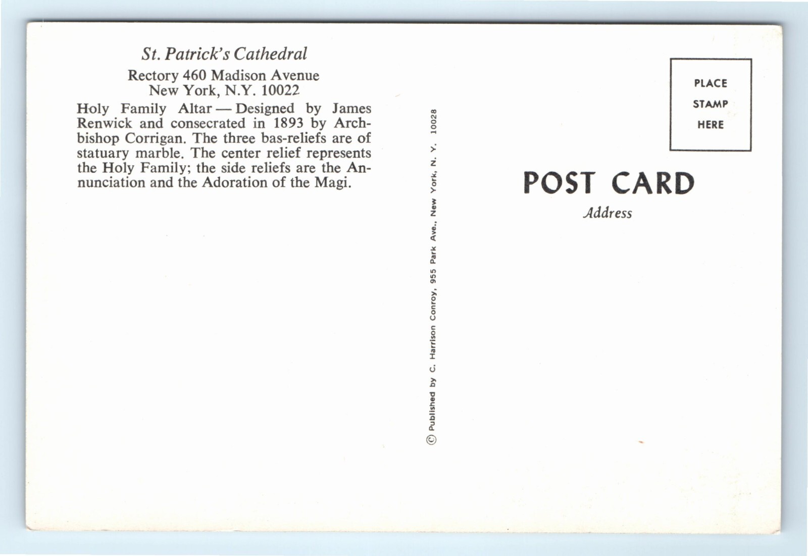 Vintage Divided Back Postcard Depicting the Holy Family Altar at St. Patrick's Cathedral Located in New York New York.