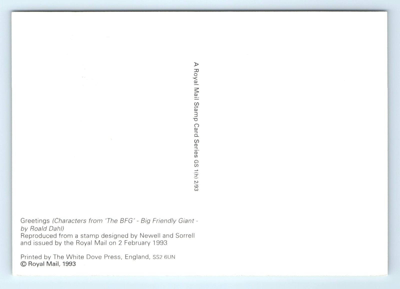 Vintage Divided Back Postcard Depicting the 1993 Greetings from the Characters of the BFG Big Friendly Giant by Roald Dahl.