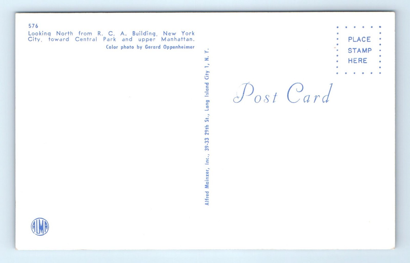 Vintage Divided Back Postcard Depicting an Aerial View of New York City Looking North from RCA Building toward Central Park and Upper Manhattan.