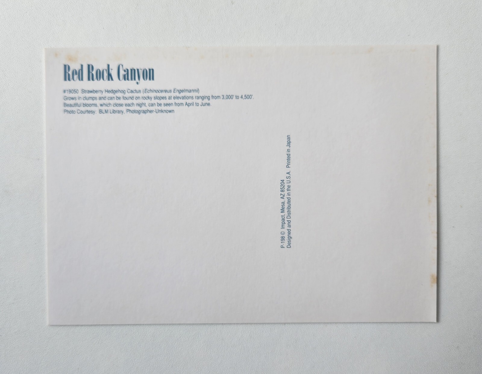 Vintage Divided Back Chrome Postcard Featuring the Blooming Strawberry Hedgehog Cactus Echinocereus Engelmannii Located Along Red Rock Canyon National Park of Las Vegas Nevada.