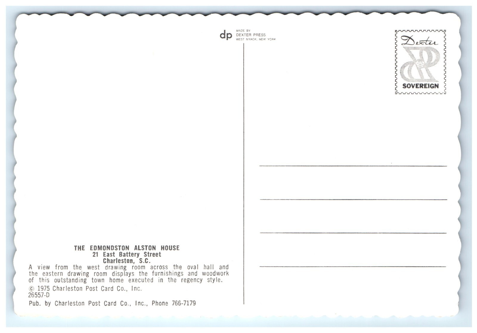 Drawing Room Hall Edmondston Alston House Charleston SC Postcard