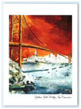 Red Sky Over Golden Gate Bridge Painting San Francisco CA Postcard