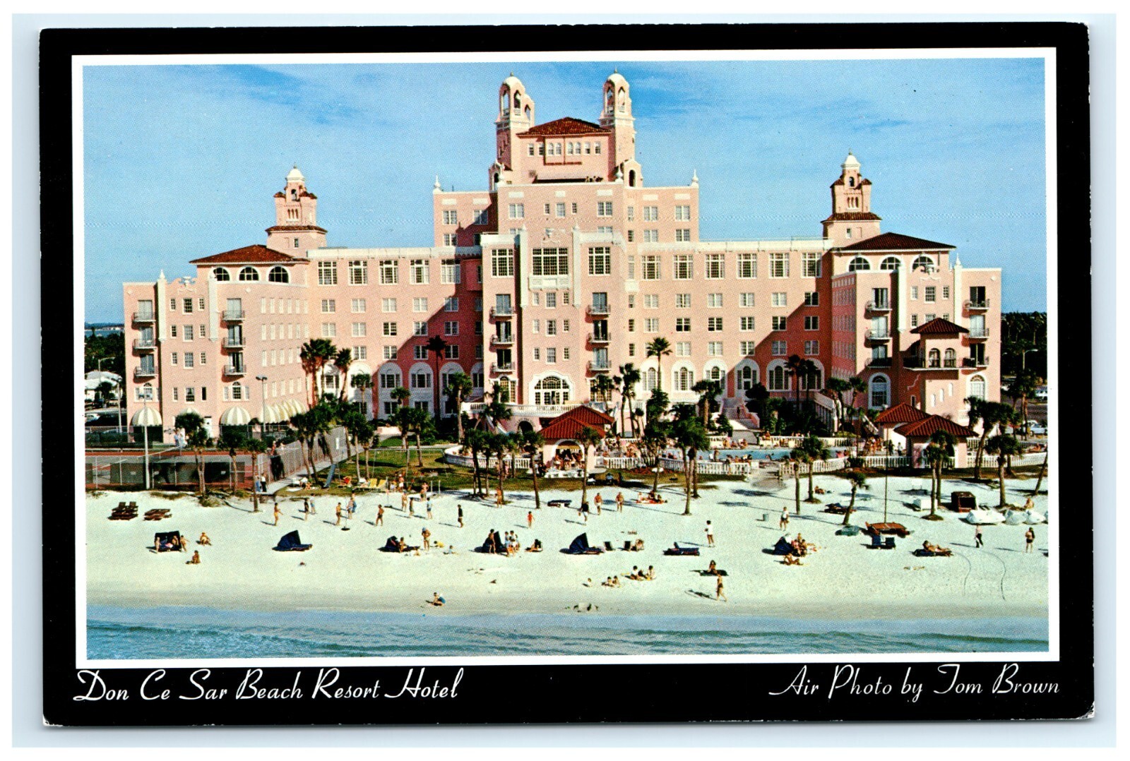 Vintage Divided Back Postcard Depicting the Don Ce Sar Beach Resort Hotel Aerial View Photo by Tom Brown Located on St. Petersburg Beach Florida.