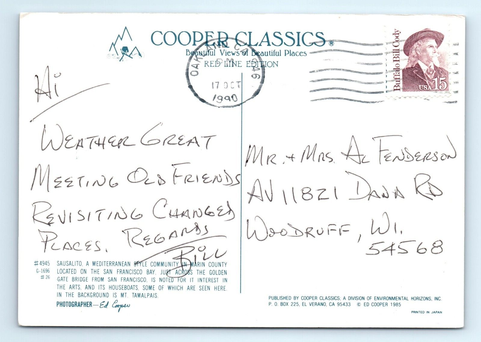 Boats Houseboats Mt Tamalpais Sausalito CA Postcard Posted