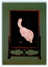 Vintage Divided Back Postcard Depicting a Suzhou Cat Embroidery Presented to President Nixon by the Chinese Government in 1976 Currently Housed in the Structure of Peace Gallery at the Richard Nixon Library and Birthplace in Yorba Linda California.