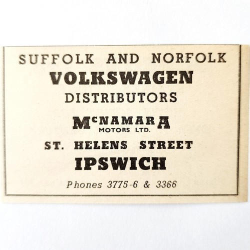 1954 Volkswagen McNamara Motors Suffolk Advertisement Import Automobilia E89F1