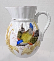 Victorian Hand Painted Jug Pitcher Colorful Bird In Stalks Rope Handle 3 3/4"