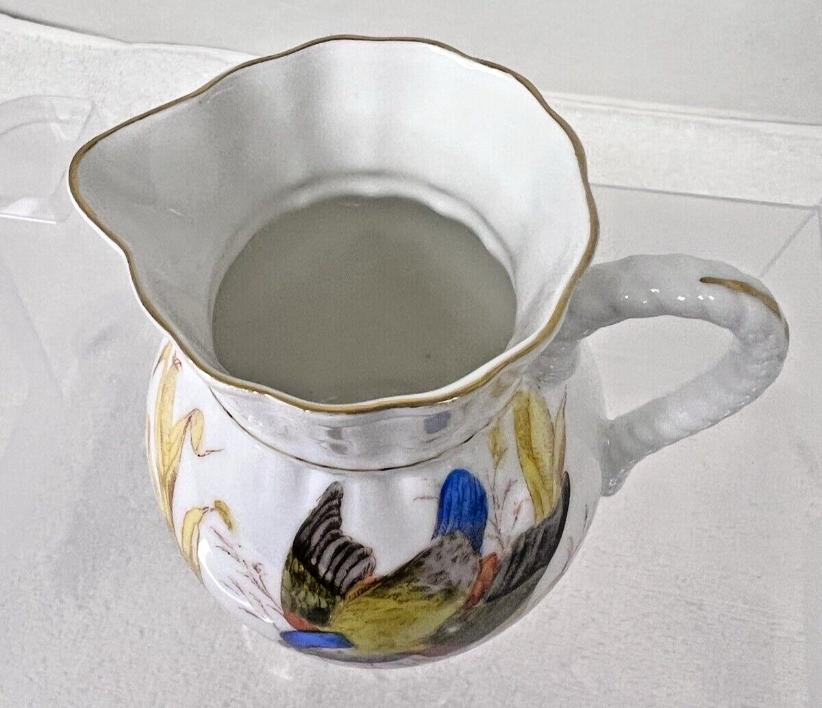 Victorian Hand Painted Jug Pitcher Colorful Bird In Stalks Rope Handle 3 3/4" it also has gold details the bird is so sweet a ruffled top rope handle very Victorian in style