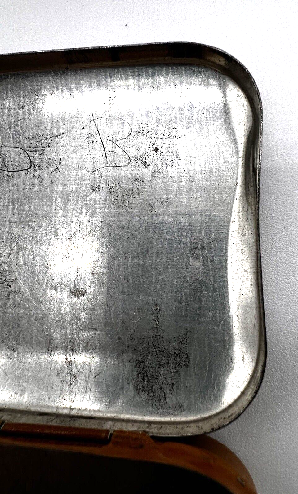 The Webster Typewriter Ribbon Tin Star Brand Royal no 10 Hinged 2 1/2 x Jo 2 1/2 x 3/4 inches. The letters SB scratched into the lid inside and out. In fair shape some paint wear and it is empty! Tin Only !