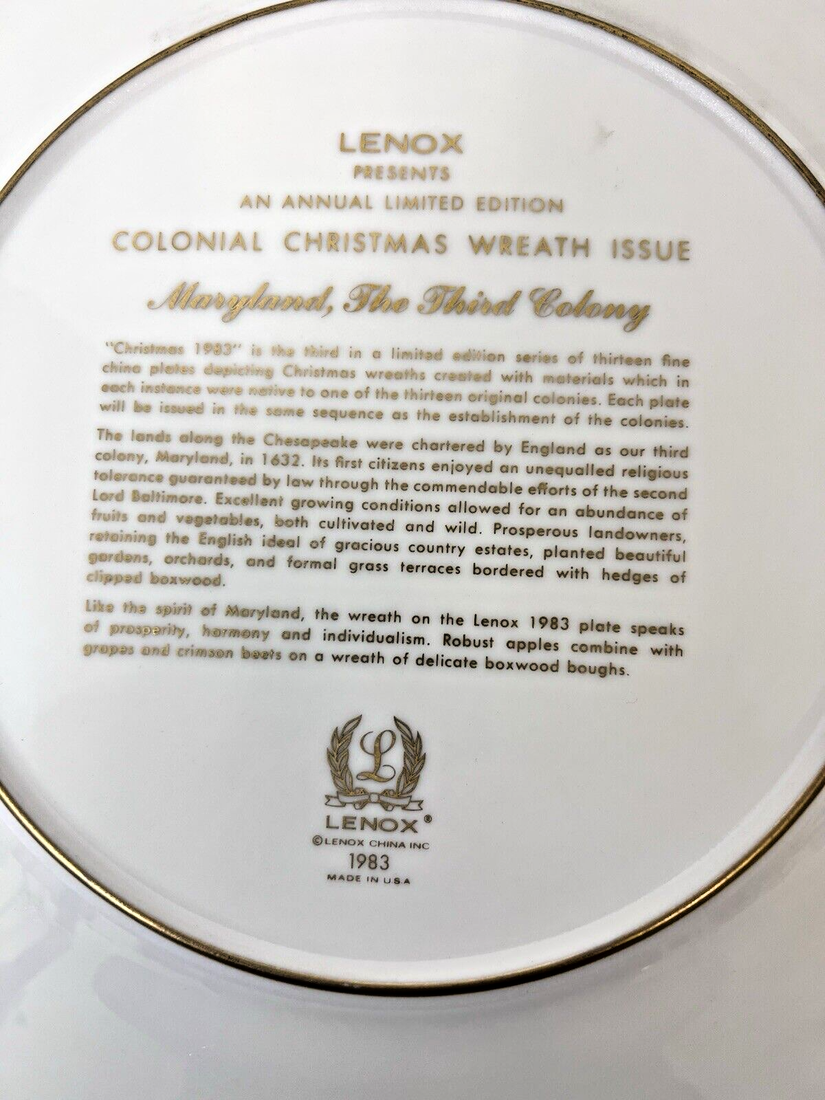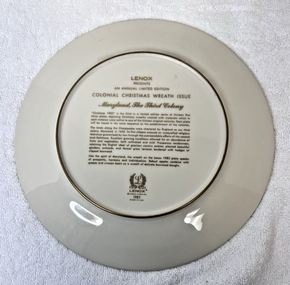 Lenox Colonial Christmas Maryland Wreath Plate 10 3/4 Inch Excellent Shape