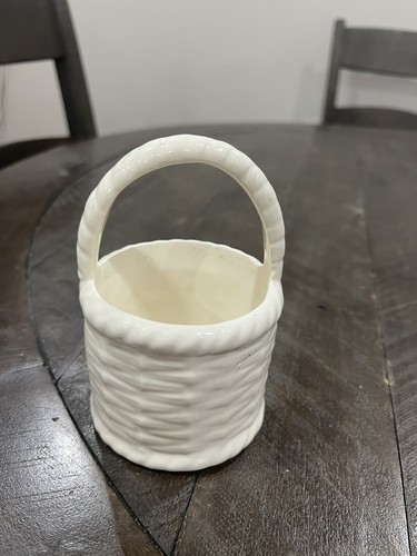 Vtg Haeger Pottery Basket Weave Ceramic Planter Round White Small