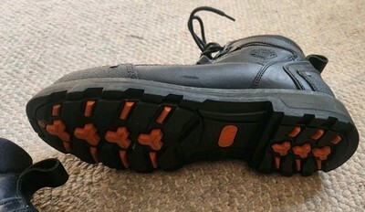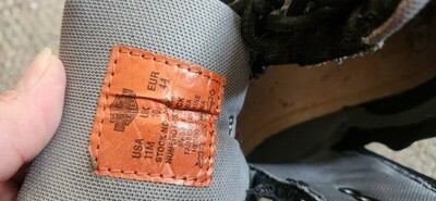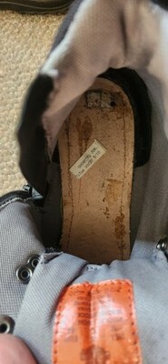 These boots look to have not been worn. There are a few minor imperfections and they are missing the insoles. Size 11M Mens boots.