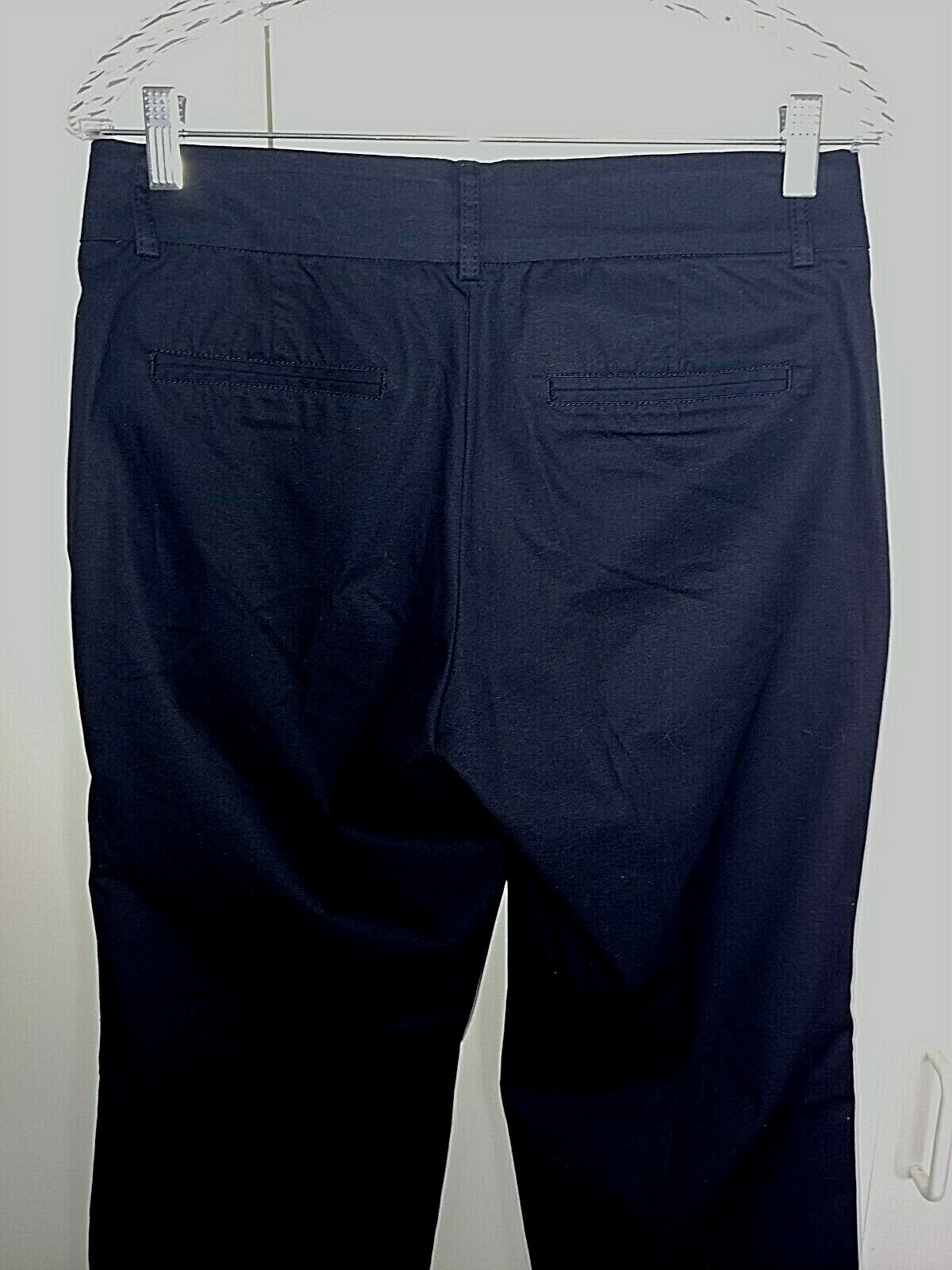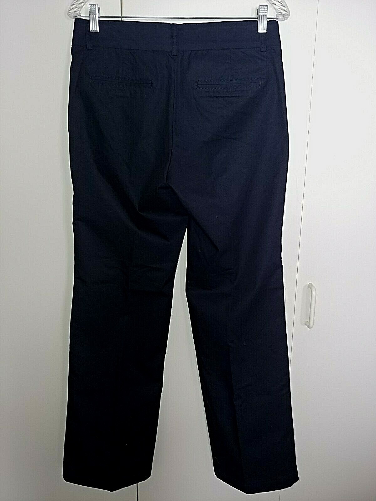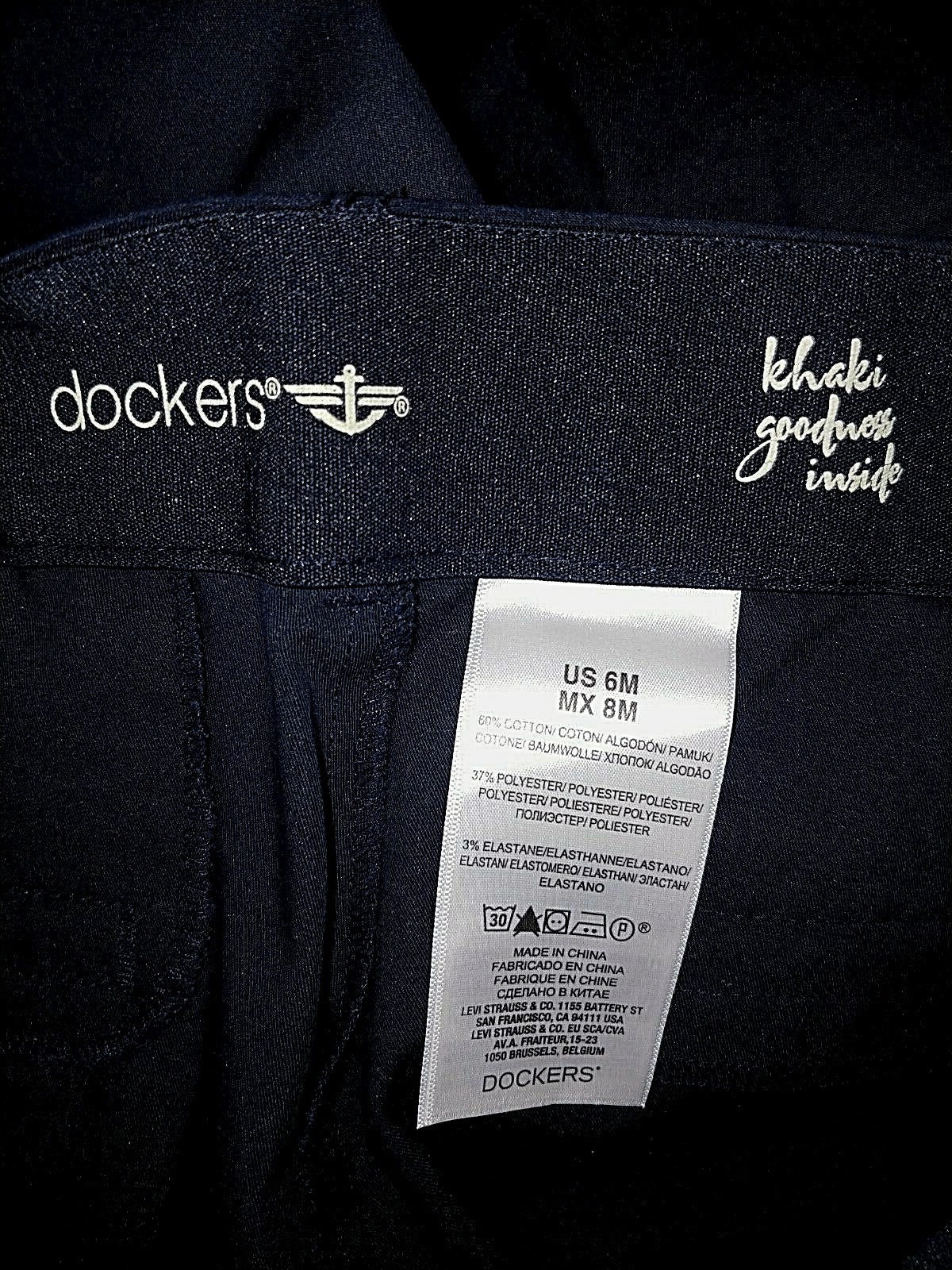 THIS IS A NICE PAIR OF LADIES DOCKERS "KHAKI GOODNESS INSIDE" DARK NAVY PANTS IN A SIZE 6M. THEY ARE IN EXCELLENT, WORN ONCE AND SHORTENED, CONDITION.
