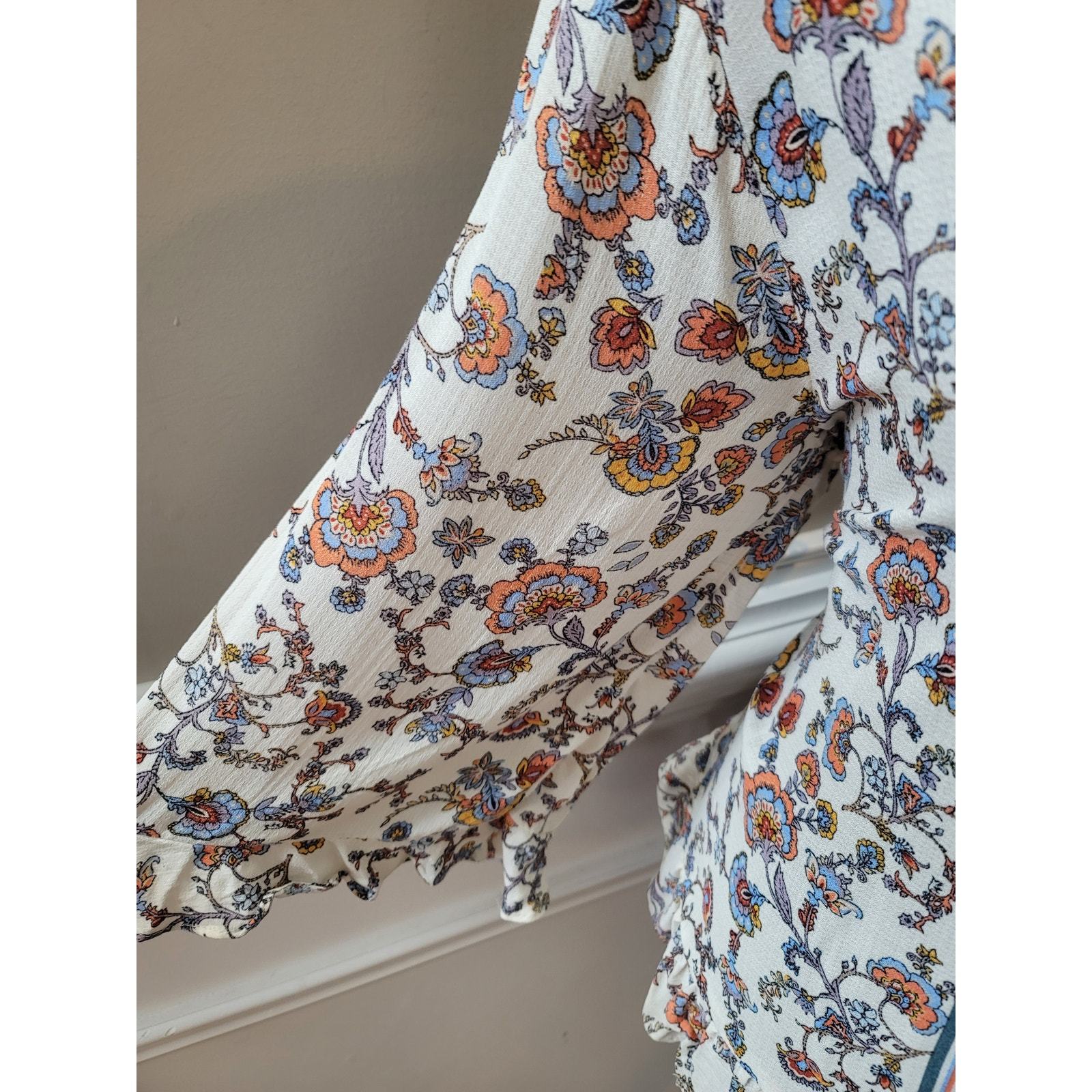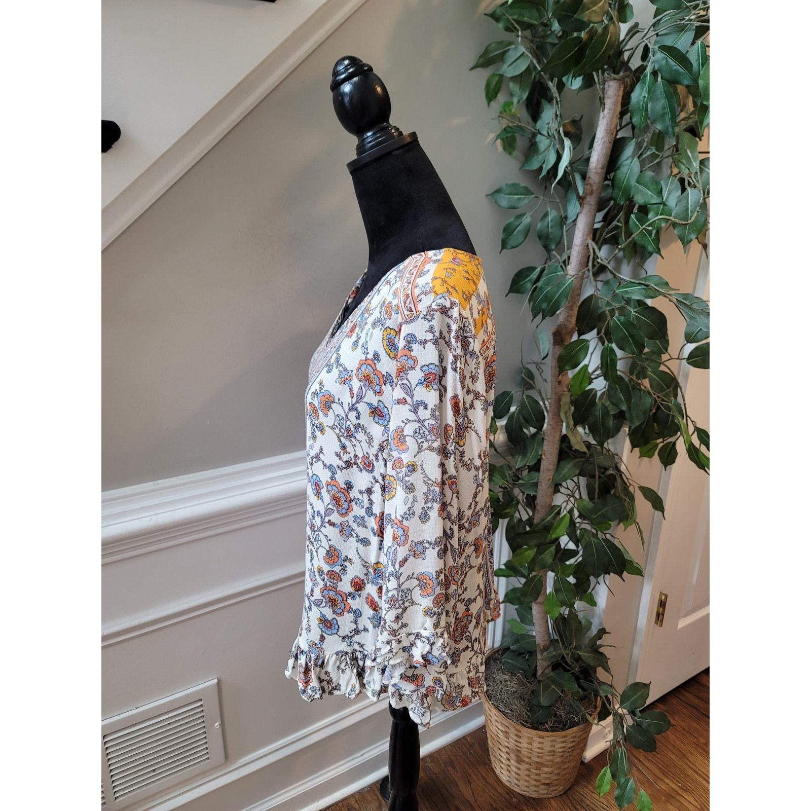 Cynthia Rowley Blouse Women's Large Multicolor Viscose Floral Boho Peasant Top
