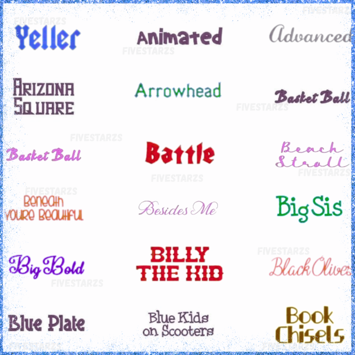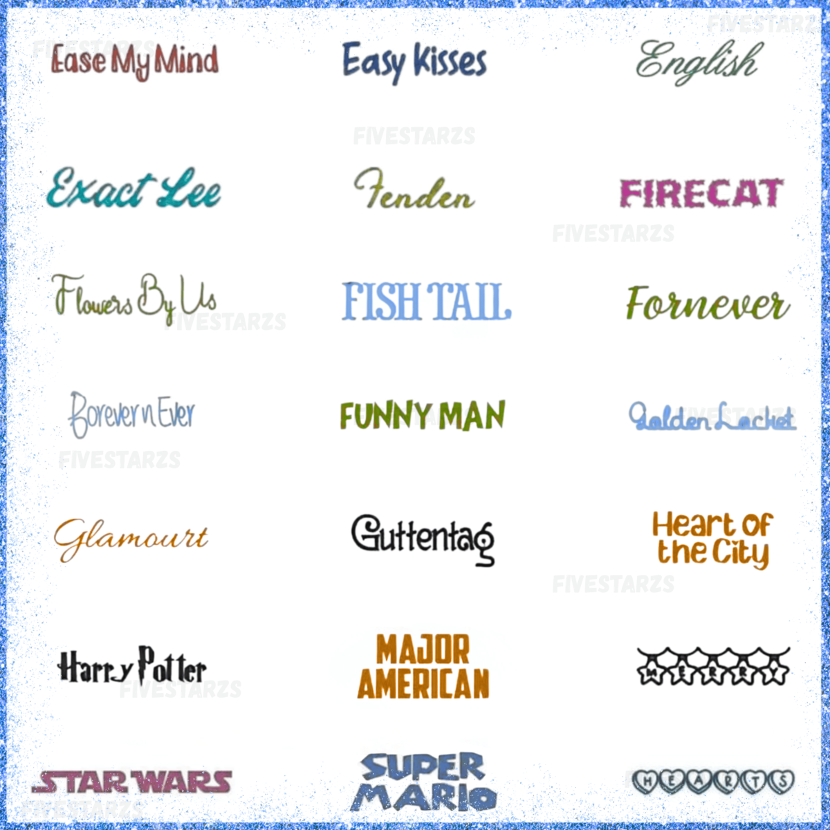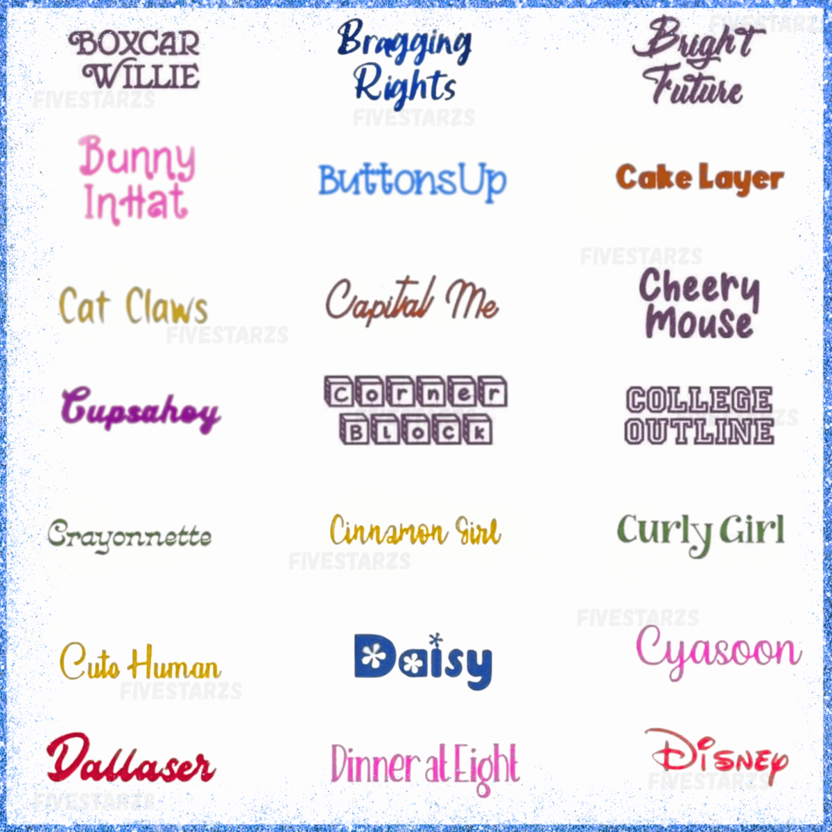 Styles: Includes elegant scripts, playful lettering, bold fonts, and classic alphabets