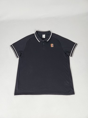 Nike Court Heritage Short Sleeve Tennis Polo Men's XL Black Raglan FQ2101-010