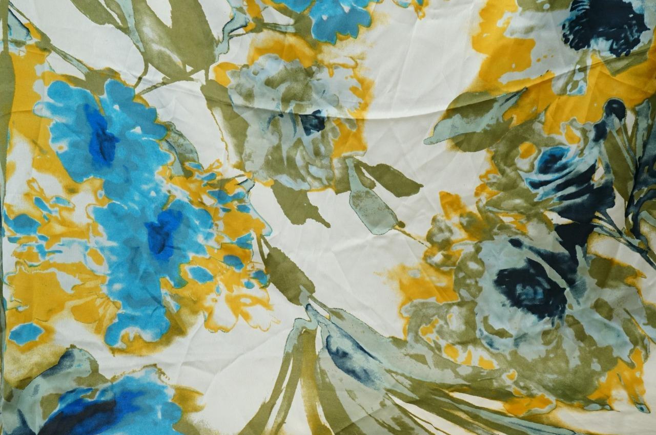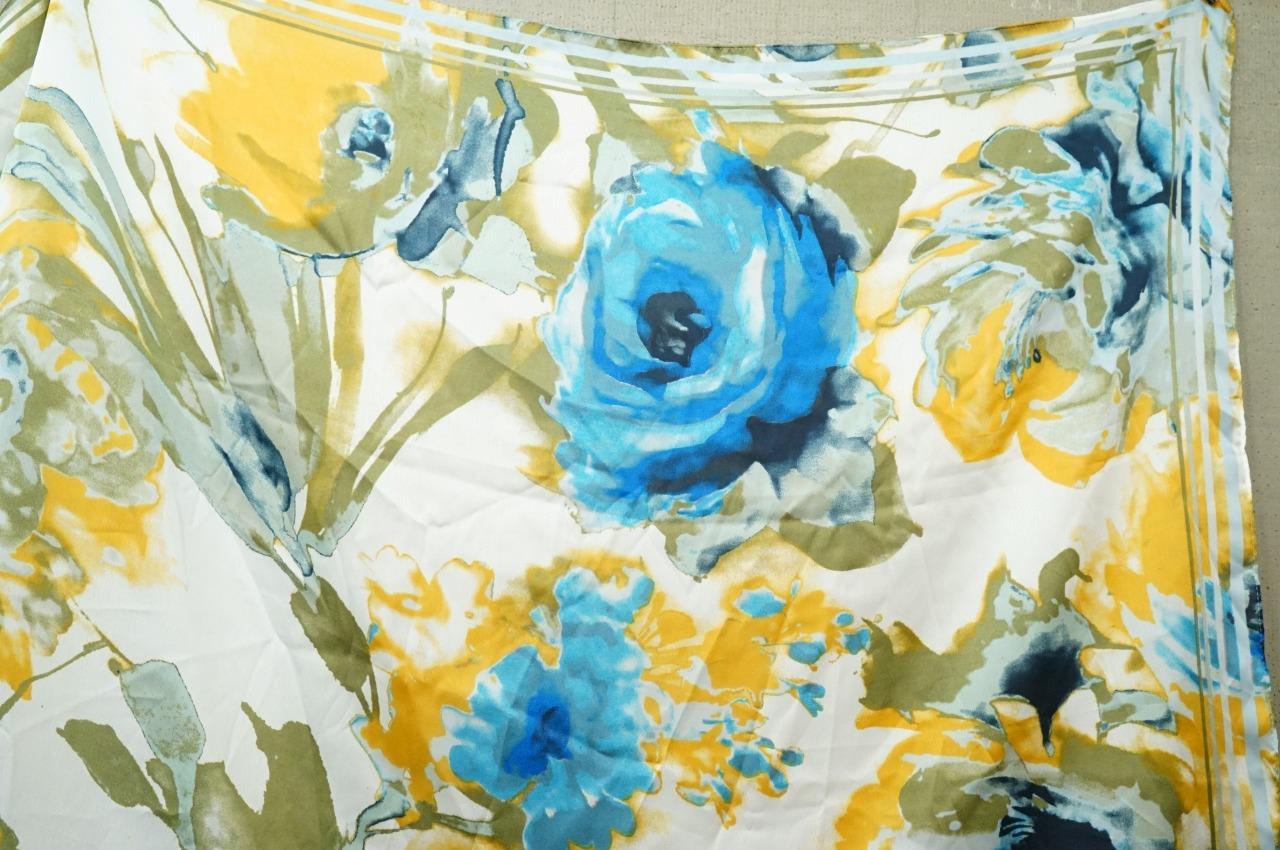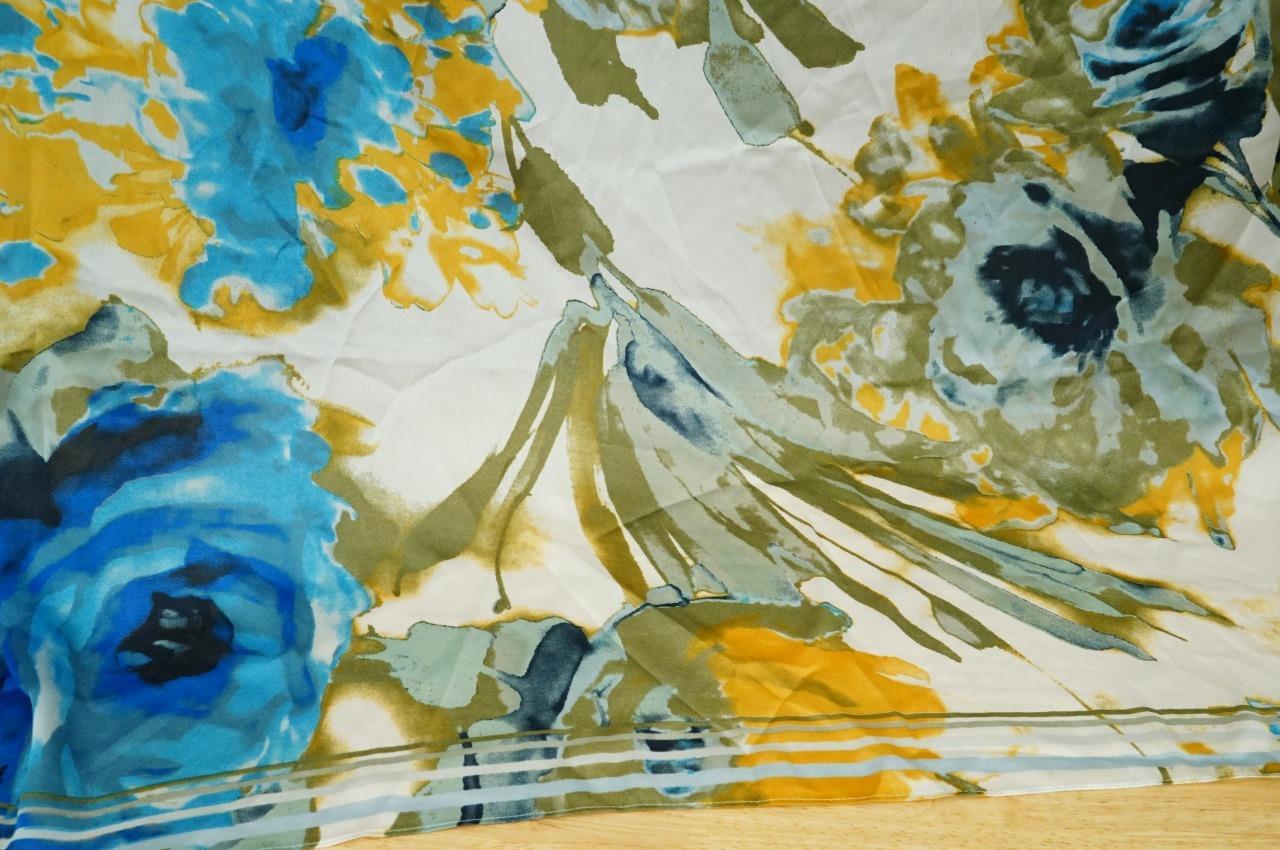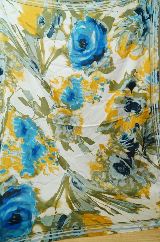Vince Camuto Chambray Floral Scarf Shawl NWT Blue Gold Watercolor 48x48. No smoke or pet odors.
