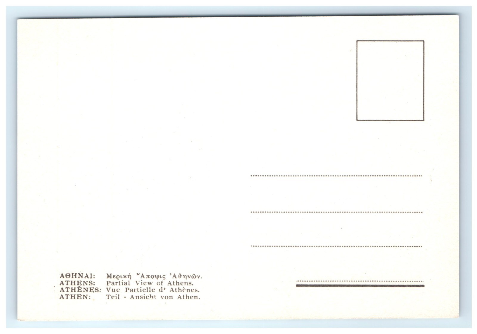 ? Back Unused; Multilingual caption (Greek, English, French, German); no publisher identified