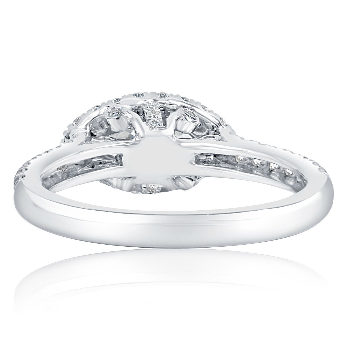 Cet anneau est-ouest unique presente un ensemble horizontal 0,52 carat marquise coupe en diamant naturel entoure d'un halo de diamants rond incoloriques etincelants en micro-pave, tandis que des diamants supplementaires tapissent la tige de la bague et la galerie. Fabrique a la main dans de l'or blanc de 14 carats et complete avec une finition polonaise haute. Le poids total des carats est de 1,03 carats.