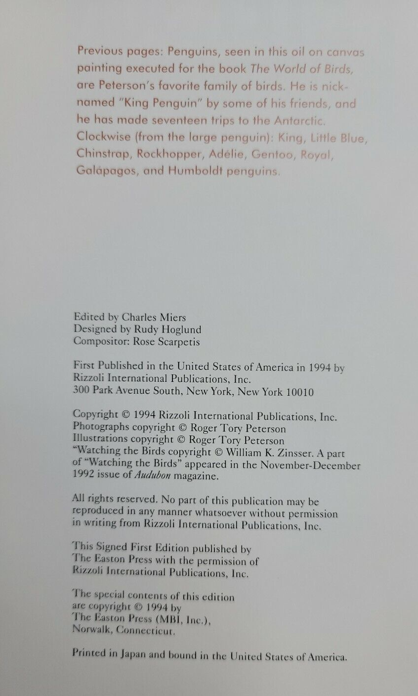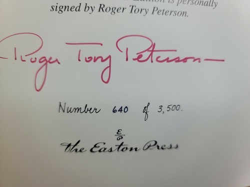 Personally signed by Roger Tory Peterson on the title page. This is number 640 of a limited edition of 3,500 copies. Published by Easton Press, 1994.