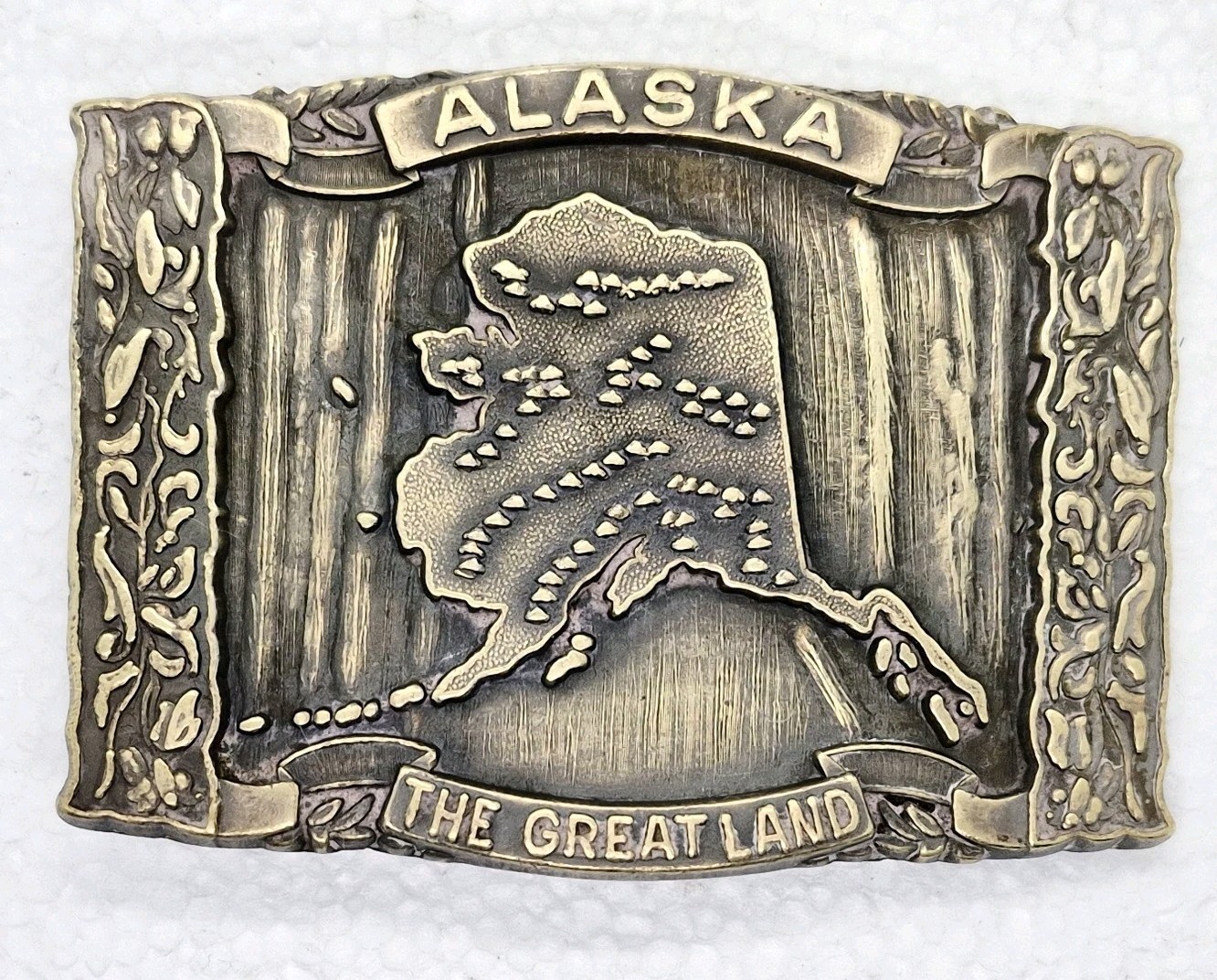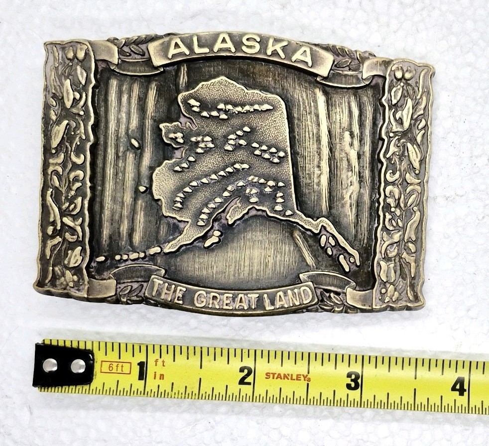 Alaska State Vintage Brass Belt Buckle "The Great Land"