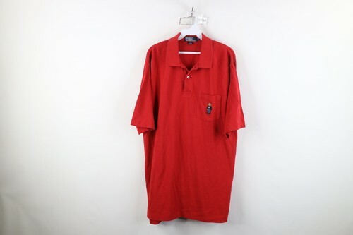 Vintage 90s Ralph Lauren Mens XL Spell Out Bear Collared Polo Shirt Red Cotton