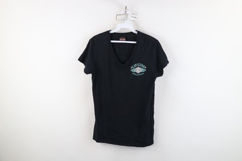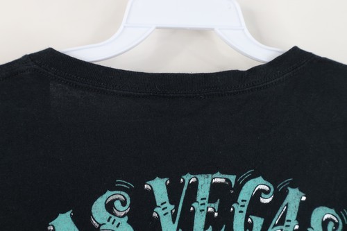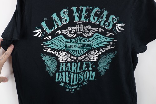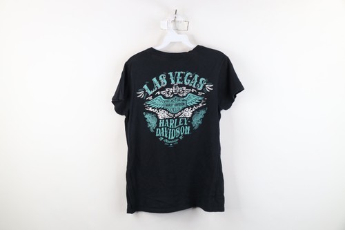 Y2K Harley Davidson Womens Medium Faded Spell Out Las Vegas Wings T-Shirt Black
