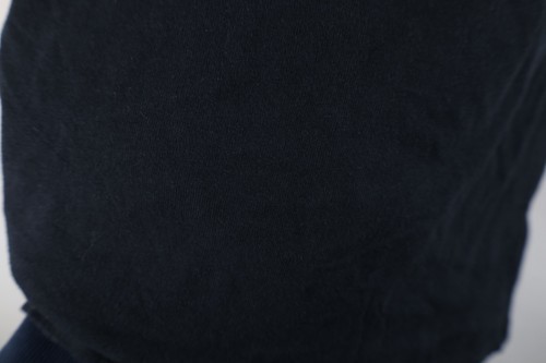 Blemishes/dark spots front, back. Mended holes back bottom. Collar, arms discolored. Color, graphics faded. Pilling