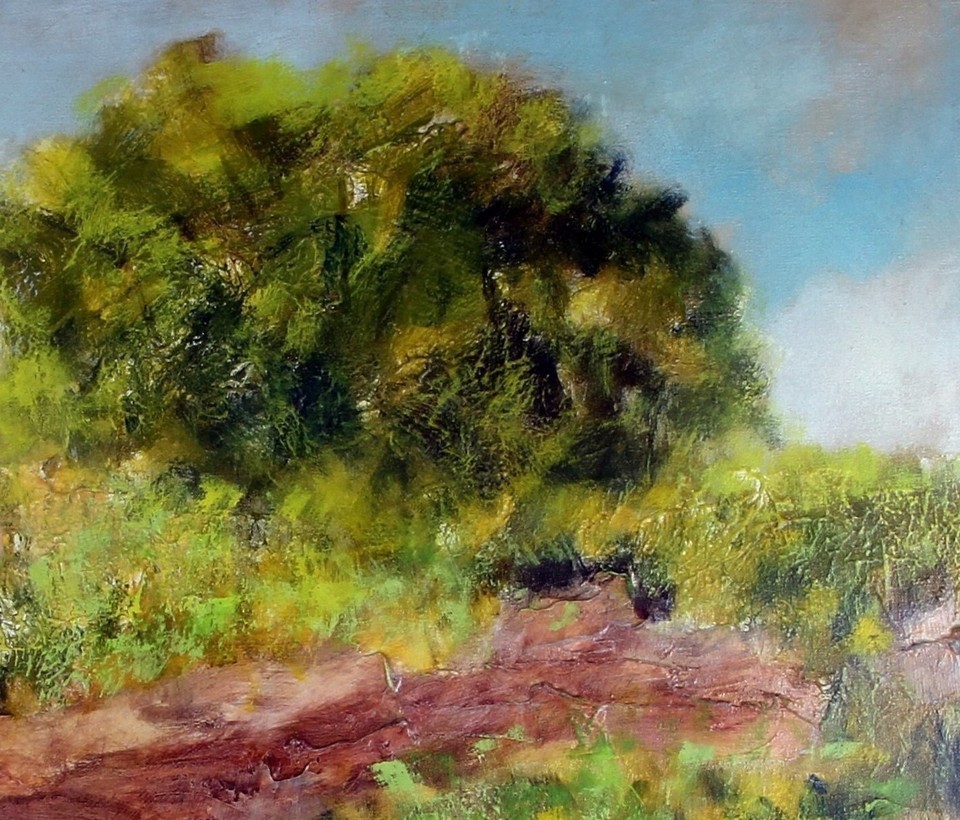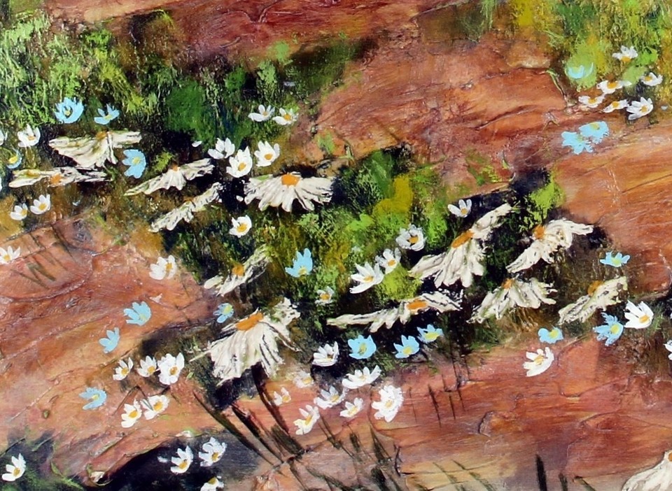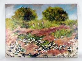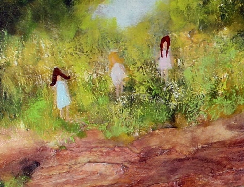 Untitled Oil Painting of Children in Nature with Flowers Trees
