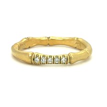 Sterling 18k Yellow Vermeil Bamboo 3 mm Ring w/ 0.10 TCW Diamond Accents Sz 6