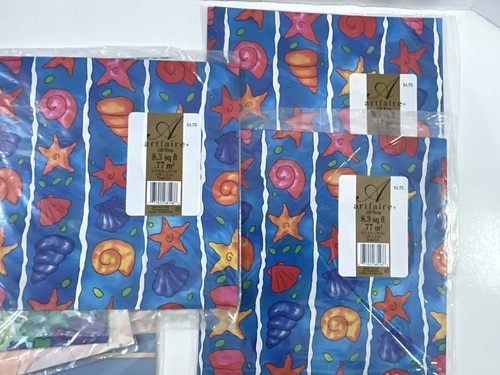 Vintage Lot Of 7 Assorted Artfaire NOS Wrapping Paper Summer Sea Theme