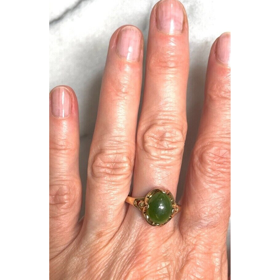 YELLOW GOLD AND NEPHRITE (GREEN JADE) RING SIZE 9 SKY