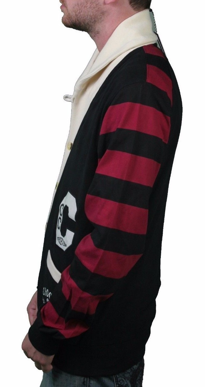Esto es para una nueva marca con etiquetas Crooks Castles Knit Air Guns Collar de chal Black/Scarlet Cardigan Sweater Tamaño pequeño 80% algodon 20% poliester