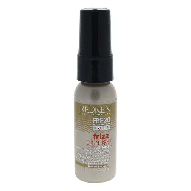 The Redken Frizz Dismiss Smooth Force FPF20 (1oz) is a lightweight lotion spray designed to detangle and improve manageability while offering long-lasting frizz control, smoothness, and protection against humidity. Perfect for use at the roots, this spray tames frizz without adding weight to the hair, ensuring a sleek, smooth look without compromising volume or texture. Ideal for all hair types seeking a polished finish.